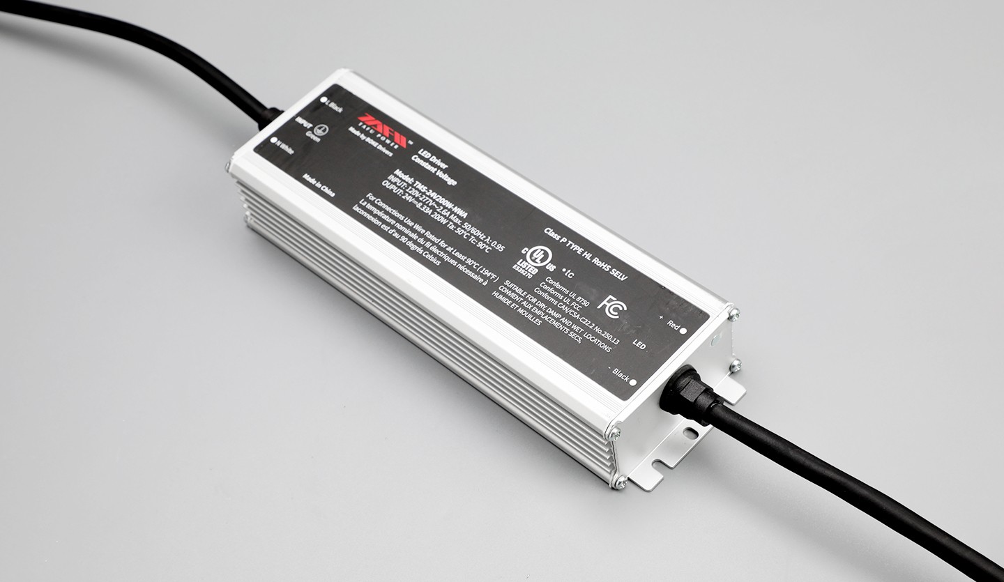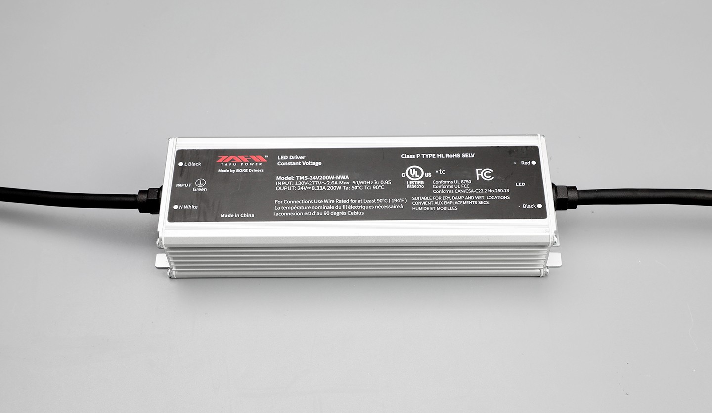 TMS-24V200W-NWA | 120-277VAC | 200W MAX. | 24VDC | 8.33A | >0.95 | UL/cUL/FCC/ Class P/TYPE HL/RoHS | L216*W68*H40mm [L8.5*W2.7*H1.6in.] |